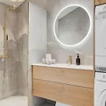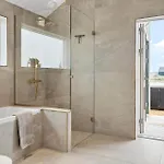 Los cuartos de baño también disponen de una bañera de hidromasaje, una ducha y una lavadora. Hay una secadora para la comodidad de los huéspedes.